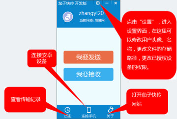 茄子快传电脑版是联想公司出品的一款用于电脑与手机之间的文件传送工具,该软件通过对环境声音的感应,将手机之间自动建立连接,只要有无线网卡的电脑就可以实现无需数据线传输文件。让用户摆脱数据线、蓝牙等复杂的分享方式,用一种新颖的交互让用户体验到近距离线下社交中与人分享的快乐 。