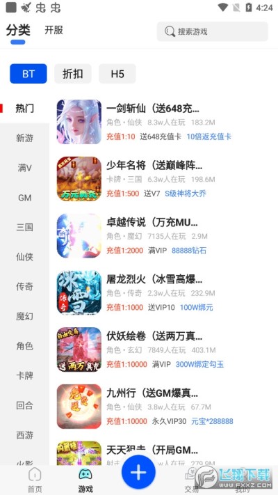 鱼爪游戏官方最新版是一款非常棒的手机游戏平台,这款软件上为用户提供各种各样的的特色手机游戏,游戏覆盖面广,种类众多,支持破解游戏还有bt游戏,在这里你还能体验充值返利的玩法哦,快来试试吧!
