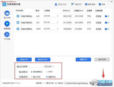 迅捷视频压缩软件是一款高效智能的视频压缩工具,可通过设置视频FPS与BPS来控制视频大小与清晰度,软件支持压缩的视频格式包括MP4、AVI、WMV及FLV,压缩时用户可自定义设置输出分辨率、输出格式及压缩选项,实现个性化高清视频压缩。