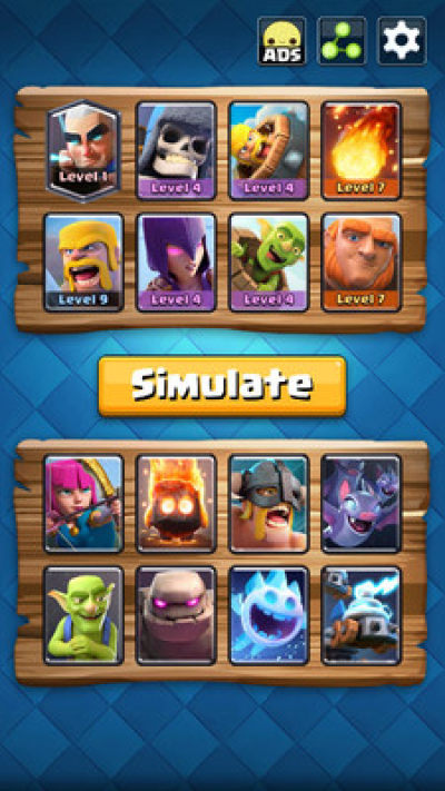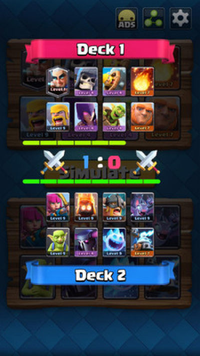 《对战模拟器》是一款可以帮助你模拟皇室战争战斗的工具。 它准确地模拟了皇室战争中任何对战的战斗结果。 你可以很容易地找出哪个卡组更强,哪个卡组在战斗中获胜的可能性更高。