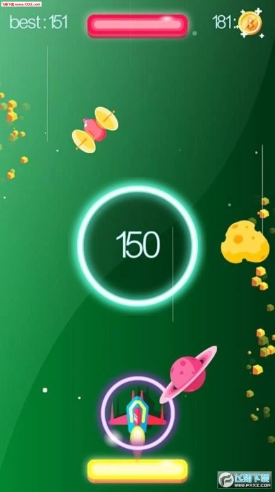 躲避流星的袭击攻击,会遇到各种各样的形象,可以将他们击碎,也可以降落进行探险。