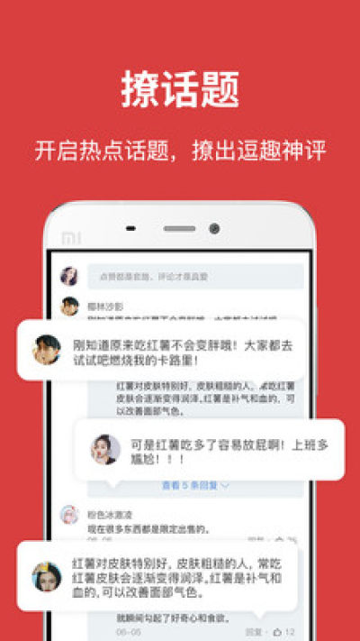 【撩话题】精彩的分享,如同打开了一个有意思的话题,提问、回复、讨论,志趣相投的小伙伴们聚在一起,你言我语聊起来。不同的话题、不同的兴趣点,不同的小伙伴,就好像一个个朋友圈、一个个兴趣组。意见领袖、粉丝围观和幽默的神评论,让话题与评论从此精彩起来。