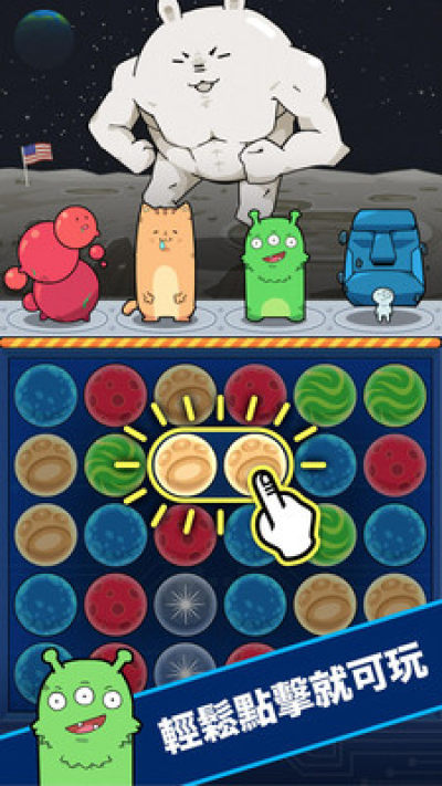 1. 跟随音乐节奏,点击两个或两个以上相邻的同颜色星球来攻击!