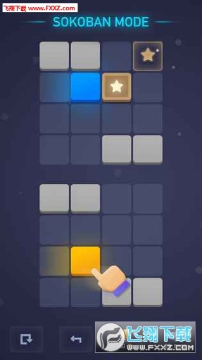 控制黄色方块帮助蓝色方块从迷宫逃脱,找到最佳路径并使用较少的步骤来完成关卡,只有2%的人能玩过30关!