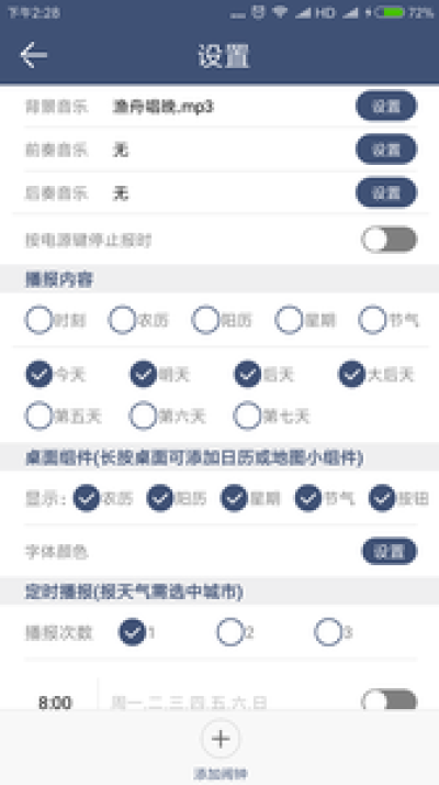 支持自定义闹钟独立配置