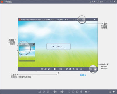 2345看图王提供缩略图、鸟瞰图、多帧查看器等功能,自定义界面样式。更提供换肤功能,可以在时尚蓝黑和蓝色天空界面间切换。
