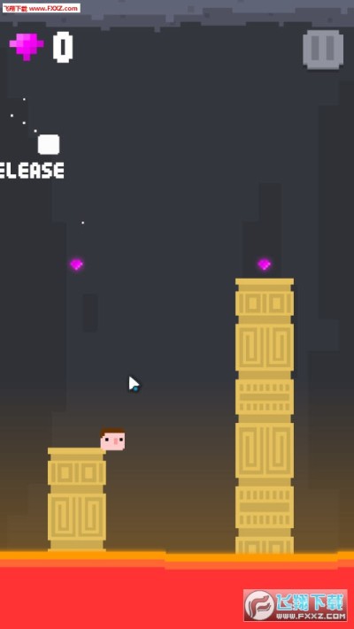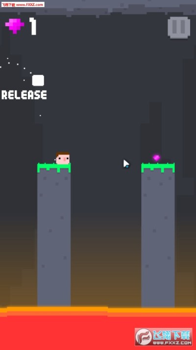 按住你的拇指,使你跳得更大,释放开始下降。从支柱跳向另一支柱,同时避免经典的危险像射击火球和尖峰。