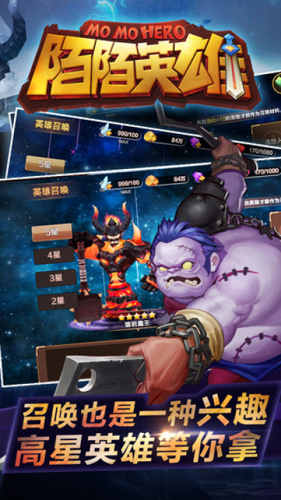 《陌陌英雄》是知名通讯软件“陌陌”旗下的“陌陌游戏”推出的一款以英雄养成、闯关冒险为主题,集休闲策略、即时战斗和社区交互为一体的动作类卡牌手游。游戏画面以魔幻风格为主,拥有近200个英雄人物设定和多重挑战关卡设计。
