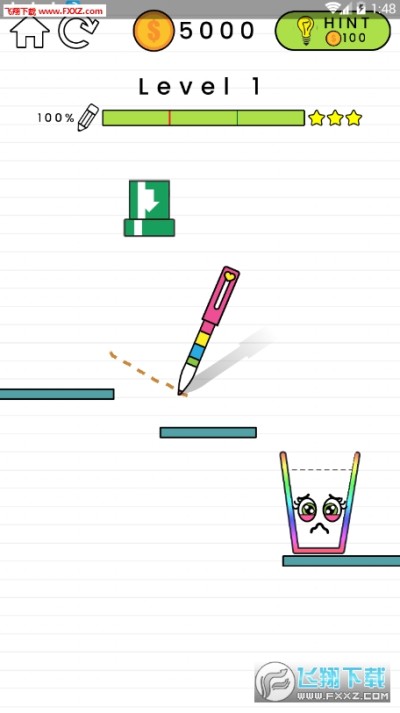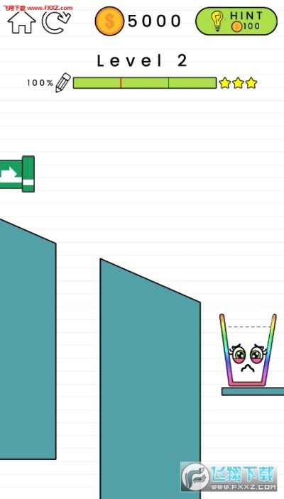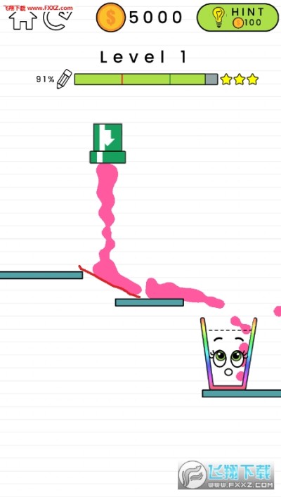 1、游戏的画面简洁明快,你要通过画出不同的线条来将所有的水流引进玻璃杯中;