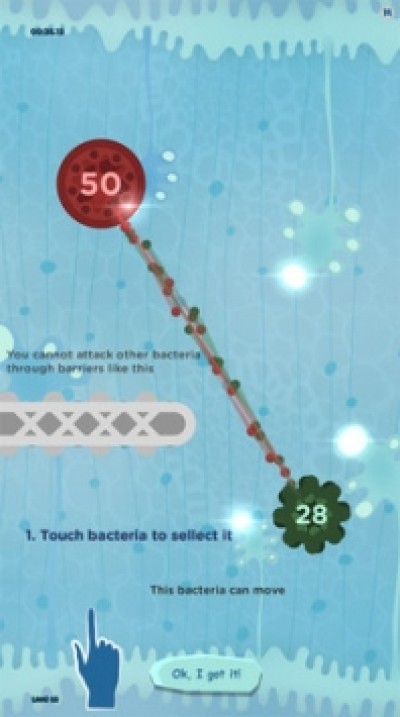 成为世界上最小的生物组织。在这个游戏中你将扮演细菌,尝试感染其他细菌病最终控制他们。但是这并不简单 - 他们也想感染你。一旦你控制了你所有的敌人后,你就获胜并进入下一关卡。