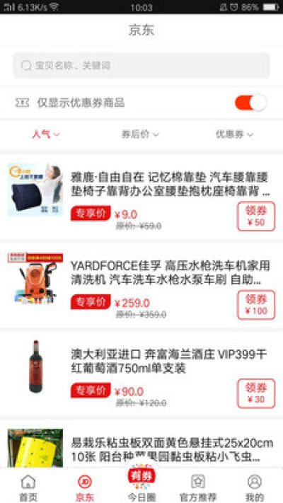 《今日有券》app是一款优惠多多的电商平台,为用户带来第三方知名电商平台的购物优惠券免费领取,而且用户分享可以获取丰厚的奖励,让用户轻松购物、畅享购物!感兴趣的话就赶紧下载体验吧!