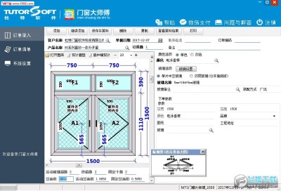 软件功能包括有:下单、算料(包括型材、玻璃、配件、辅料等等)、型材优化、成本预算、并可分类列出材料清单,方便采购人员采购及仓库做发料依据。