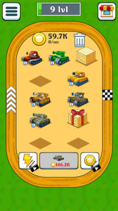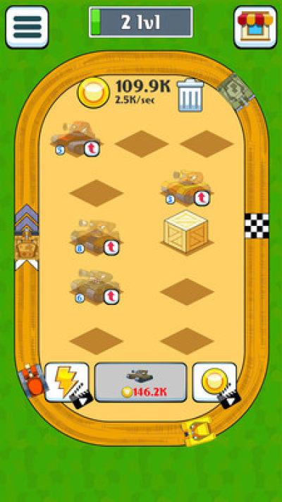 一款合并玩法的放置休闲手游。玩家可以合并相同的坦克,得到更高级的坦克,而且通过坦克竞速,可以赚取大量的金币,购买更多珍稀的坦克。游戏上手容易,感兴趣的玩家千万不要错过!