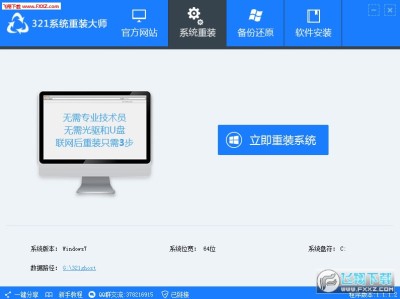 321系统重装大师是一款全自动的计算机系统在线重装辅助软件,支持一键重装winxp/win7/win8/win10系统,支持MBR及GPT分区。