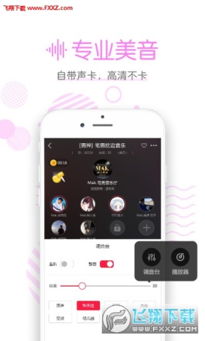 声恋FM是一个声音交友平台,在这里你可以随时随地分享你的才艺和技能,与喜欢的声音一起唱歌互动聊天,与网红达人近距离接触。