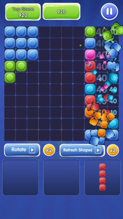 您的任务是用给定的块创建水平或垂直的直线。滑动你的手指来引导不同形状的方块和打破砖块!当你做一行的时候,它会从屏幕上清除,你清除的越多,你就会得到更高的分数。