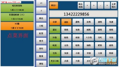 1)主界面美觀、操作簡單、快捷,主要功能在小鍵盤上即可完成,支持圖形點菜、編碼點菜、拼音簡碼點菜,錄入方式可自動切換,能極大地提高前臺營業的效率。