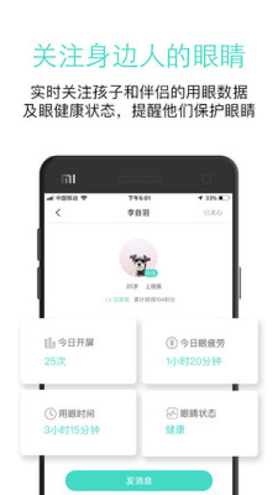 【护眼互动】权威专家在线回答用户眼疾病问题,用户间可相互交流,还能通过附近的人相互提醒护眼