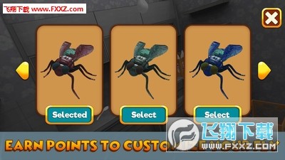 为成功完成的任务赚取积分,升级你的生存技能或定制你的苍蝇,使它在昆虫生活中更接近完美!腐肉蝇,斑点蝇,谷仓蝇,金粪蝇,蜜蜂蝇,长腿苍蝇,甚至醋蝇——你可以是任何一种!