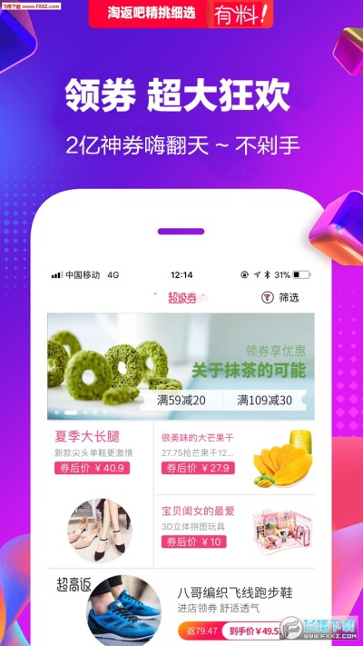 淘返吧app安卓版软件是一款专注于省钱打造的手机购物软件哦,这款软件可以为为用户提供非常强大的购物服务,在这里你可以领取超多的优惠券,买东西更加省钱哦,支持购物返利,快来试试吧!
