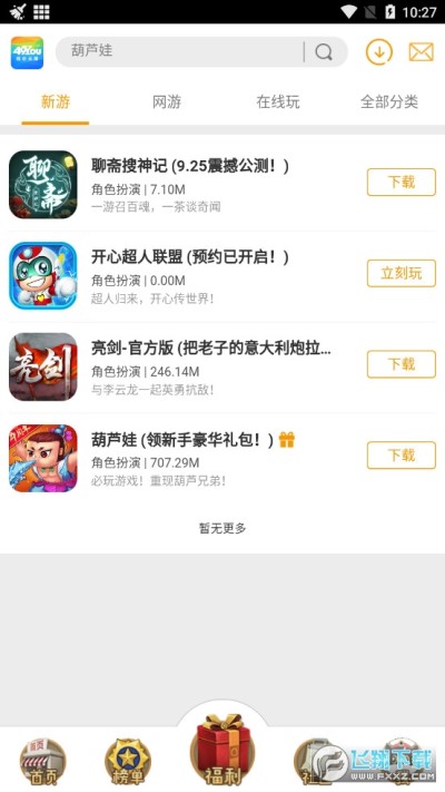 49游戏盒子app是49游戏官网精心研发打造的一款游戏下载软件,该软件深入挖掘时下广大手机用户的游戏下载需求,高效整合海量优质的手机游戏资源,烈火战神、秦美人、将神、神曲、武尊、屠龙传说、攻城掠地、龙将、神仙道、大裁决、神魔仙界等等应有尽有,且所有游戏全部经由360专业安全检测,里面不包含任何广告弹窗干扰,保证安全绿色、运行稳定,让用户可以随心所欲下载自己喜欢的各类游戏。49游戏盒子还有智能游戏加速功能,能够帮助用户快速省电,加速手游运行速度,让用户玩得更加畅快过瘾~