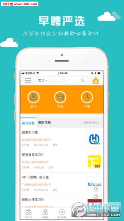 早聘严选APP是华中地区最靠谱的校园实习、大学生兼职招聘平台,为在校大学生提供优质的暑假实习,寒假实习,名企实习以及安全、轻松、靠谱的兼职服务,是垂直领域国内首款从兼职到实习,从职业咨询到职前指导的大学生找工作平台。