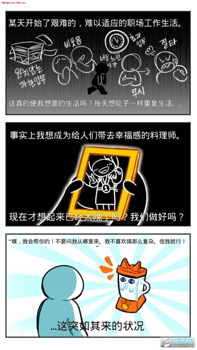 一款关于厨师的游戏。在这里你将扮演一名餐厅里面的厨师,你要根据客户的不同要求搭配不同的食物。你曾经带着梦想去北上广发展但你终究还是失败而归,在你绝望的时候发现了全新的食物制作方法。你只需要将两个不同的食物放入搅拌机中,他就会吐出新的食物。通过做出各种不同的食物来获取大量的奖励,完成你的梦想。