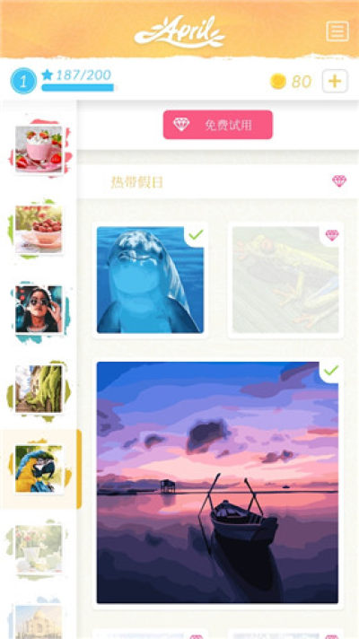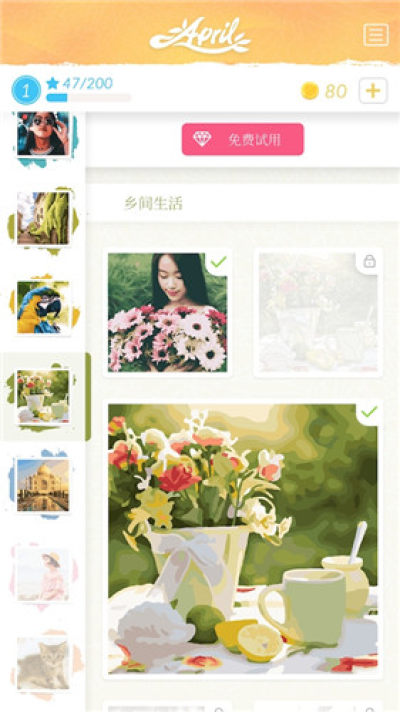 四月调色安卓版是一款艺术气息十分浓重的休闲娱乐类手机游戏,游戏以填色绘图为主要玩法,上百种图片可供玩家进行艺术的创造,绘制出你心中最为满意的图画。喜欢的朋友就快来下载游戏体验试玩一下吧!