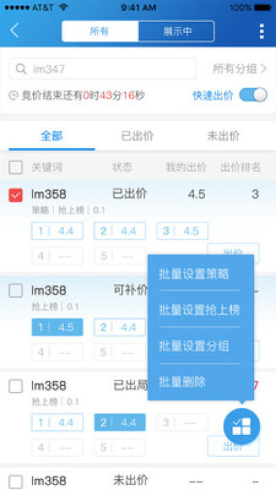 用户可以实现手机操作关键词快速出价竞价排名服务,并可查看当天已出局、已出价和历史竞价情况