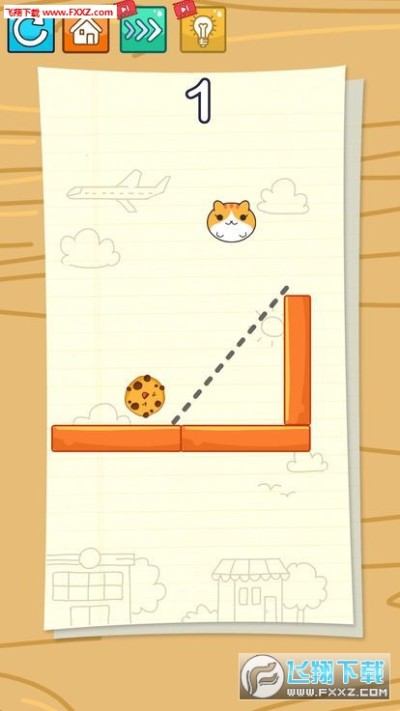 1、遵循物理画线原则,玩家需要开动自己的脑筋,活跃自己的思维,画出恰当线条,让猫咪顺利吃到甜点。