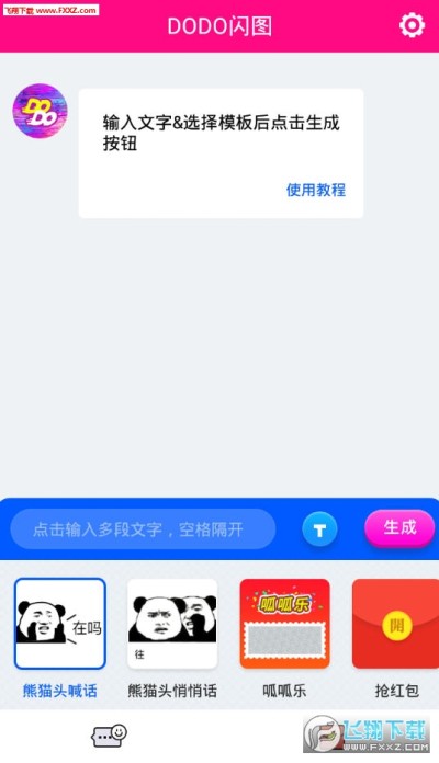 DODO闪图app官方手机版是一款非常不错的表情包制作软件,真的非常的方便靠谱,想要制作出不一样的表情包来这里就可以了,各种各样的都可以随意选择,只要输入自己想要的文字就可以出现不一样的效果,真的很不错哦,和朋友聊天互动直接使用自己制作出的各种表情包让你们之间的情感可以更好的提升更好的升华,很不错哦!