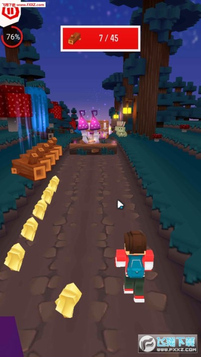 方块跑酷建造是一款方块画风的休闲跑酷手游,游戏玩法不复杂,左右操控方块人躲避危险的蘑菇障碍,前行收集金币,关卡众多,速度也会提升,你能成功闯到第几关?还可以建造你的岛屿基地,喜欢的玩家点击下载吧!