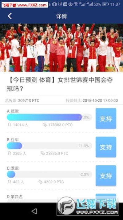 今日预测app是一款很有趣的投票预测软件,是一款很好的娱乐软件,通过投票来进行一些预测,今日预测app中会有很多热门的话题,感兴趣的话就可以参与投票、选择等,还是就自动为你预测,娱乐你的生活,感兴趣的朋友来试试吧。