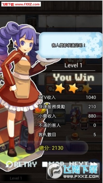 把在每个关卡中得到的收入用於设备升级,迎接难度更高的关卡和更难缠的客人,以完美的成绩完成全部关卡吧!