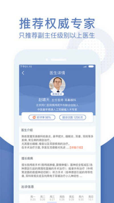 平台以医生头衔、医生擅长、用户评分等信息简单直观的展现了医生介绍,便于用户选择最适合自己的医生。