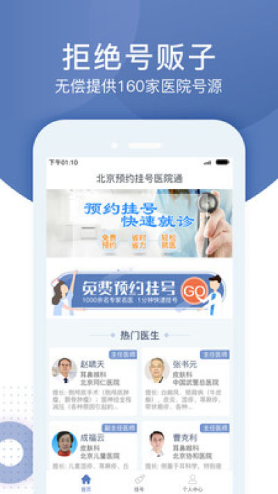 北京预约挂号就上预约挂号医院通平台,已覆盖北京市上百家大型综合、专科医院,收录了上千位北京地区三甲知名医生,避开黄牛,免费挂号,随时随地预约,轻松快捷就医。