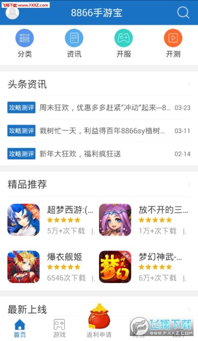 8866手游宝是一款还不错的手机游戏盒子神器,有海量的资讯和攻略,还有种类繁多的bt游戏,为我们带来最新最全的游戏资讯。
