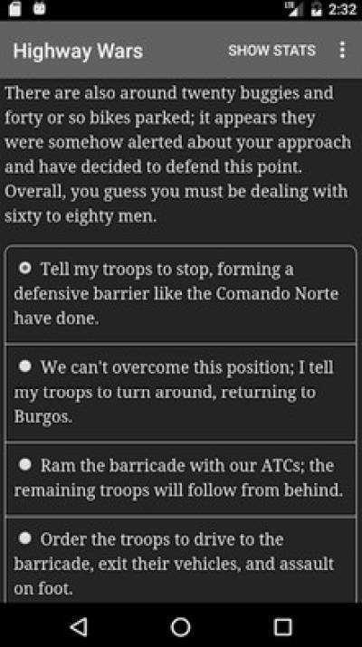 公路之战手游是一款相当不错的手机文字类型冒险游戏,进入游戏世界中玩家们就将操纵我们的小小战士不断进行各种文字冒险和大乱斗。游戏趣味的游戏体验和新奇的操作都很是吸引着我们前去试玩战斗。快来加入我们吧