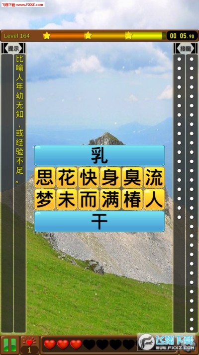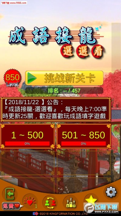 成语接龙选选看游戏主要由中文四字成语,或是常用辞汇组成,玩家可通过填字游戏形式,学习中文四字格词语,寓学习于游乐。游戏使用词汇语,包括成语、俚语、俗语等,每个关卡约有12-16道选字题,玩家可以依照提示来选择正确的答案。如何?准备好了吗?快来接受成语接龙-选选看的挑战,如果能通过所有关卡完成挑战,即可成为名符其实的《成语大师》。