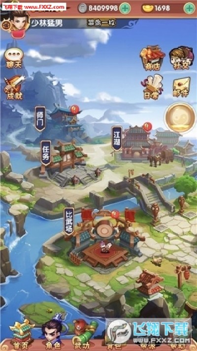 卡通风格操作界面,用卡通风格还原最淳朴的武侠世界。经典武侠音乐改编的背景音乐,带给你最轻松的武侠玩法。