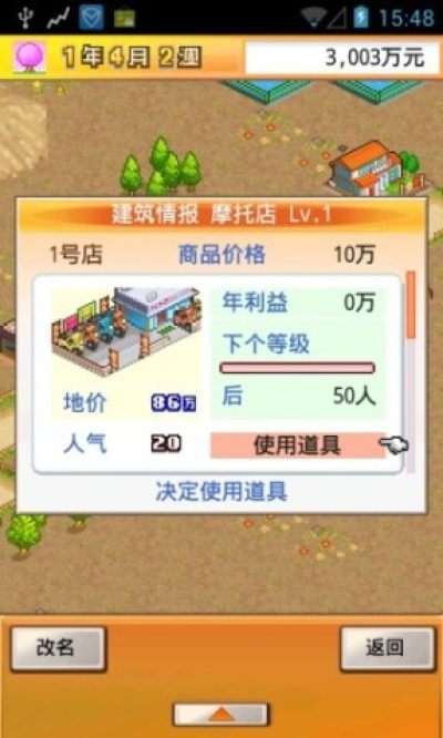当某个人员的技术能力已到100时,请及时将这些人员转职,用来开发城市中新的建筑功能。这样你可以很快获得更有价值的功能建筑,比如农场,公园,棒球场,汽车售卖店,影院等。游戏中每年会对你的某个商业建筑进行评比,如果地产的价值够高,那么可以获得好名次和金钱奖励。另外在游戏中不时的开办一些活动,比如发动居民像早起的鸟儿一样勤奋工作,以及宠物爱心之类的。