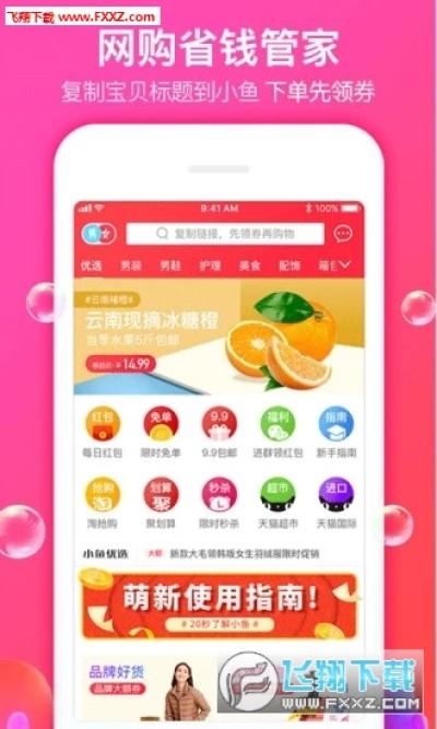 小鱼优选app是一款好用的手机购物平台,这款软件提供优惠购物服务,在小鱼优选app上用户可以领取各种优惠券,同时支持某宝某猫某东上直接购买哦,还有9.9包邮专场福利哦,快来下载吧!