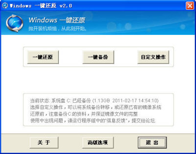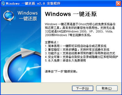Windows一键还原是一款操作非常简单的ghost的中文辅助应用程序,即使只是一个电脑初级者也可以轻易的使用这款软件。用户在安装好系统和自己常用的软件后,确保电脑处于自己最喜欢的状态,然后再安装本应用并将此状态备份下来,那么日后无论自己的电脑出现何种情况,都可以利用本软件进行一键还原到自己最满意的初始状态了。这款软件适用Windows XP、Windows Vista、Windows7等所有Windows系统,功能强大,适用范围广!