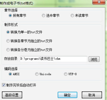 能将整本小说打包为chm、txt、pdf、jar及umd格式电子书,以方便在手机或mp3等工具上阅读。