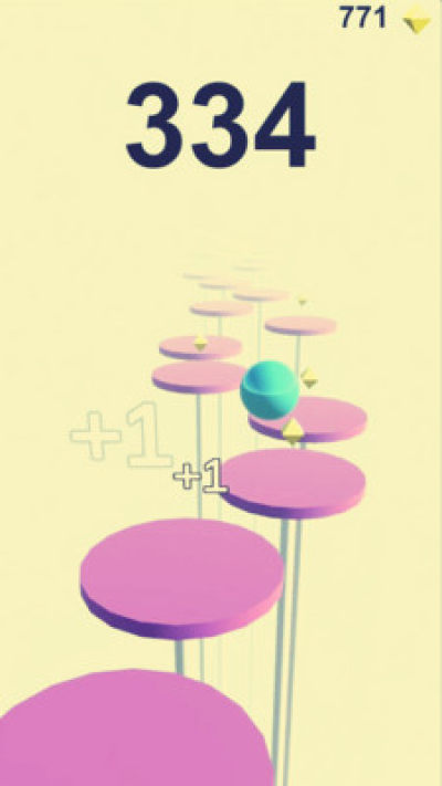 轻轻滑动屏幕控制小球前进方向,让小球落在圆形平板上,小球前进速度会随着游戏流程变化。