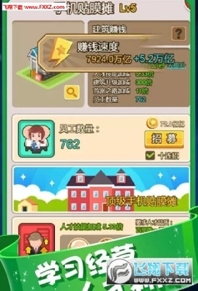 解锁店铺后购买员工,可以源源不断地获得金币,店铺等级越高,员工数量越多,店铺能提供的秒产金币越多。