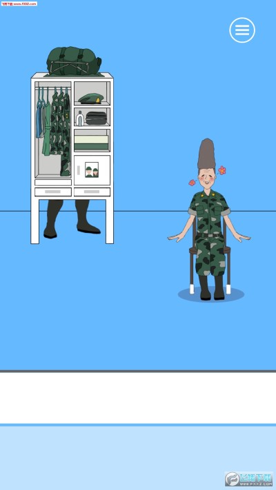 前往的找东西的休闲游戏,玩家需要避开长官的视线找到被藏起来的零食,比如第一关的零食在一个做头发的士兵头上,玩家需要先找到抽屉中的剃刀,然后剃掉地方的头发即可找到,喜欢的朋友可以下载试试。