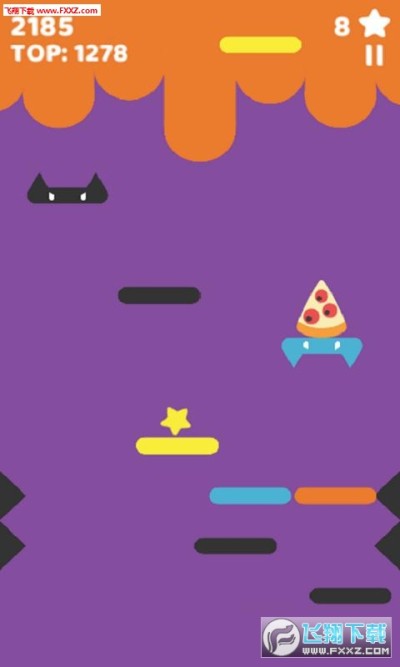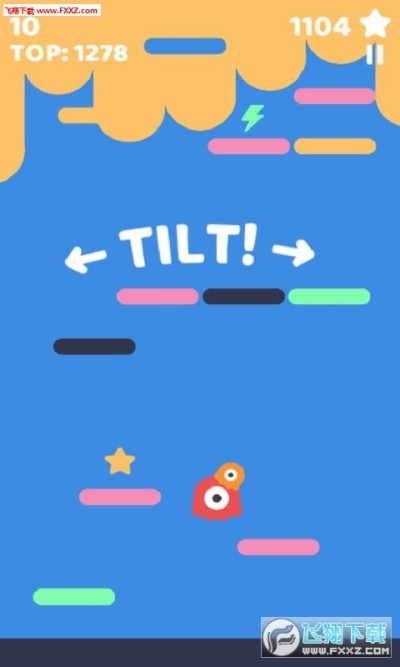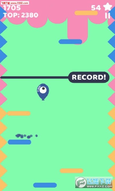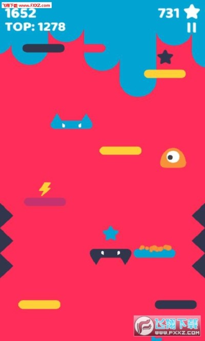 一款无尽跳高类型的休闲游戏,玩家需要左右摇晃手机控制着小怪物跳上台阶,但要小心如果背景颜色改变,相应颜色的台阶就会消失。