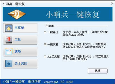 小哨兵一键恢复是一款操作方便快捷的系统备份和恢复工具,即使完全不懂电脑的人也可以操作使用,它具有安全、快速、保密性强、压缩率高、兼容性好等众多特点。这款软件设计专业,为大家提供了DOS及windows两种环境的界面。