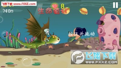 2.游戏中有海绵宝宝最喜欢吃的蟹黄堡,也有带刺的海胆,还有酷炫的飞龙模式;